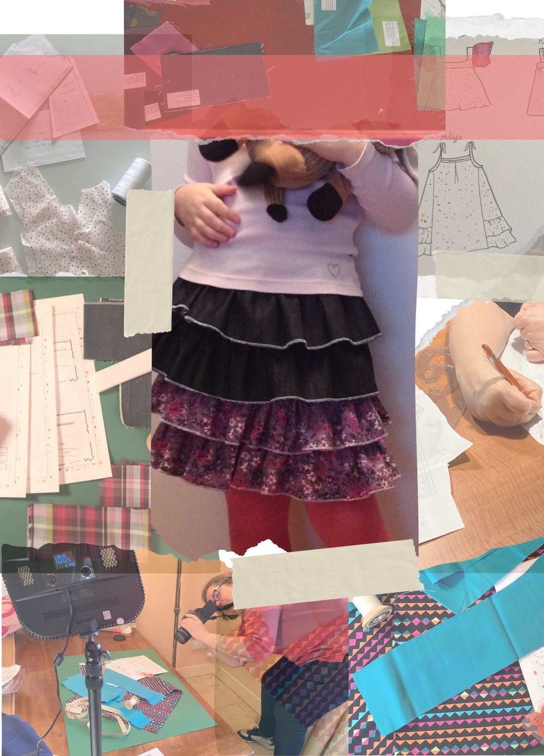 Des kits de couture prêts à l’emploi : pochettes et vêtements .
